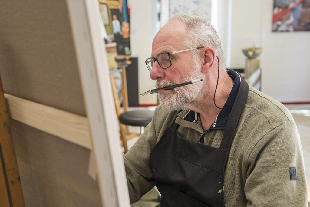 Karst vindt het heel belangrijk om zich steeds te blijven ontwikkelen. Na de Nationale Schilderschool in Zwolle heeft hij les gehad van Ginus Lindeman, Ben Kuipers en Piet van de Hoef. “Van elke kunstenaar en workshop leer je wel iets nieuws. En natuurlijk is het heel gezellig om met Winny Lenderink in hetzelfde atelier te werken.”