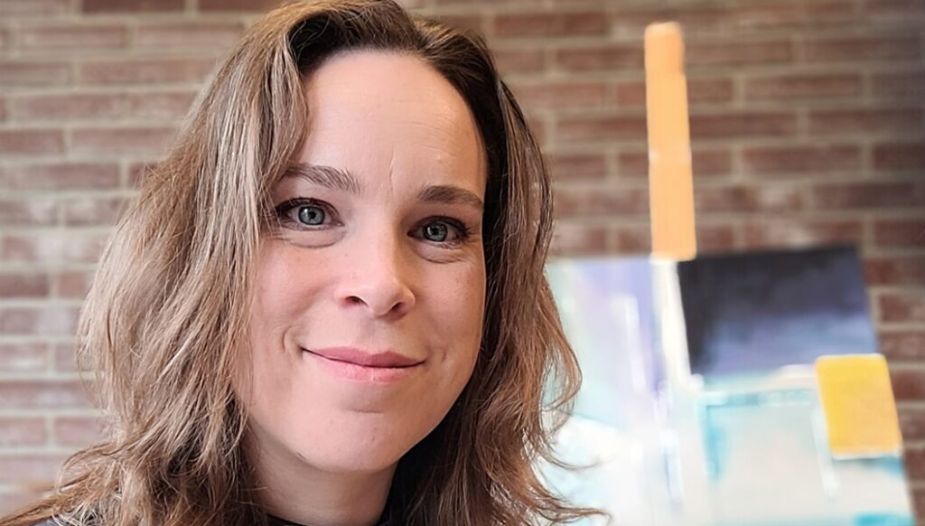 Veronique heeft op de kunstacademie in Kampen en later in Zwolle gezeten. Ze heeft een druk bestaan. “Onze kinderen zijn nog jong, ik geef les en ik wil tijd hebben om te tekenen en te schilderen.” Het is een beetje woekeren met de beschikbare tijd. Als inspiratiebronnen noemt ze als eerste de imposante natuur van IJsland of Schotland. Meteen daarna het beeldend werk van Serra, Judd en Shapiro.